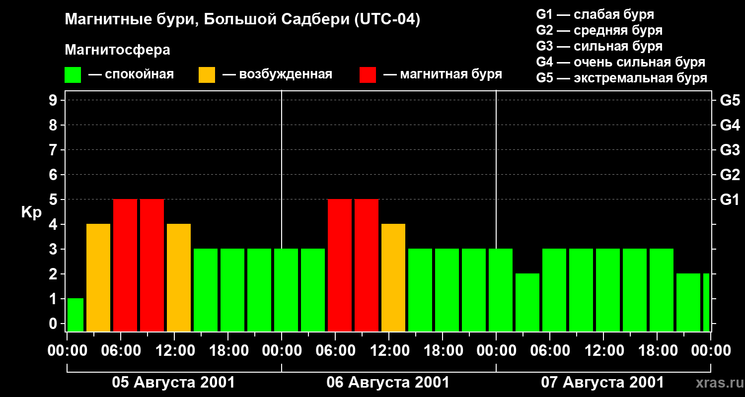 Магнитные бури Большом Садбери 7 августа 2001 года