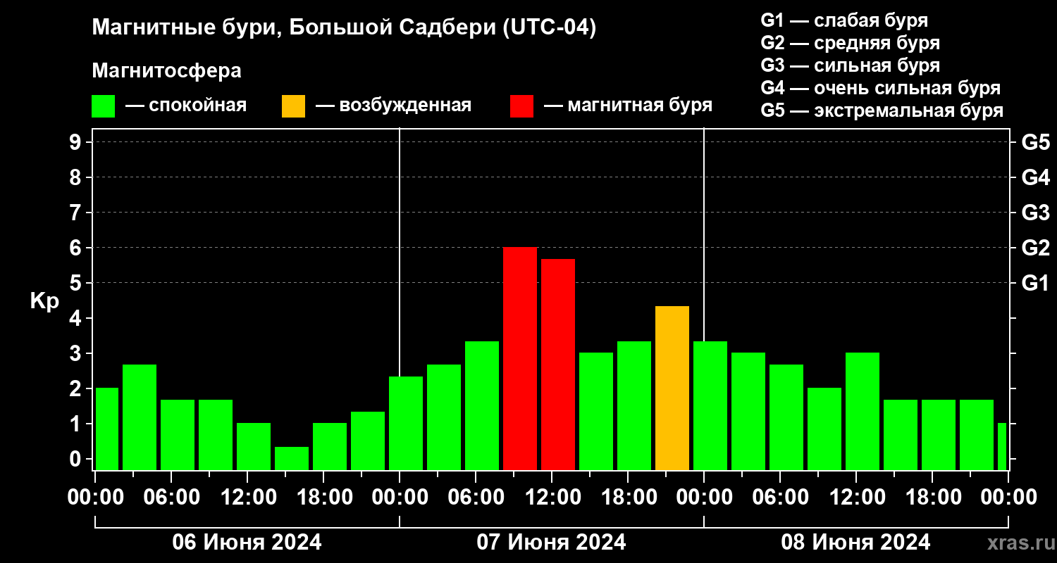 Магнитные бури Большом Садбери в июне 2024 года