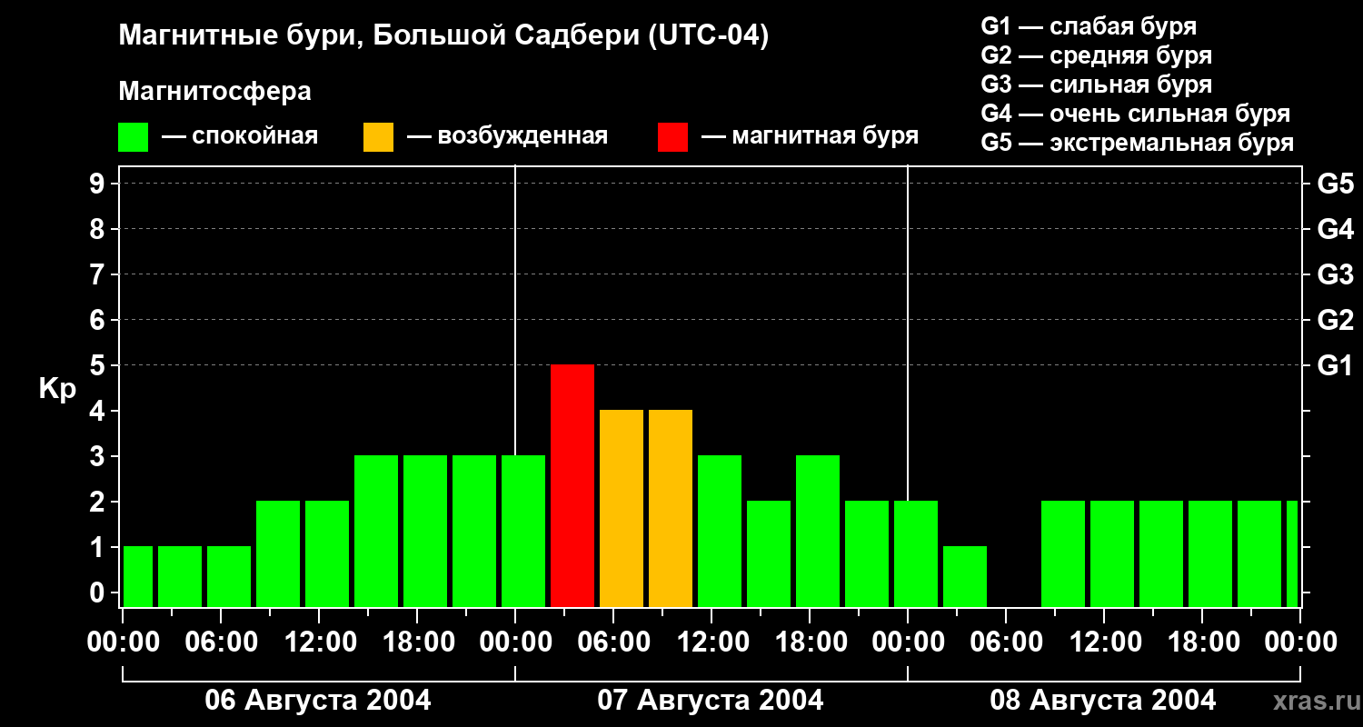 Магнитные бури Большом Садбери 8 августа 2004 года
