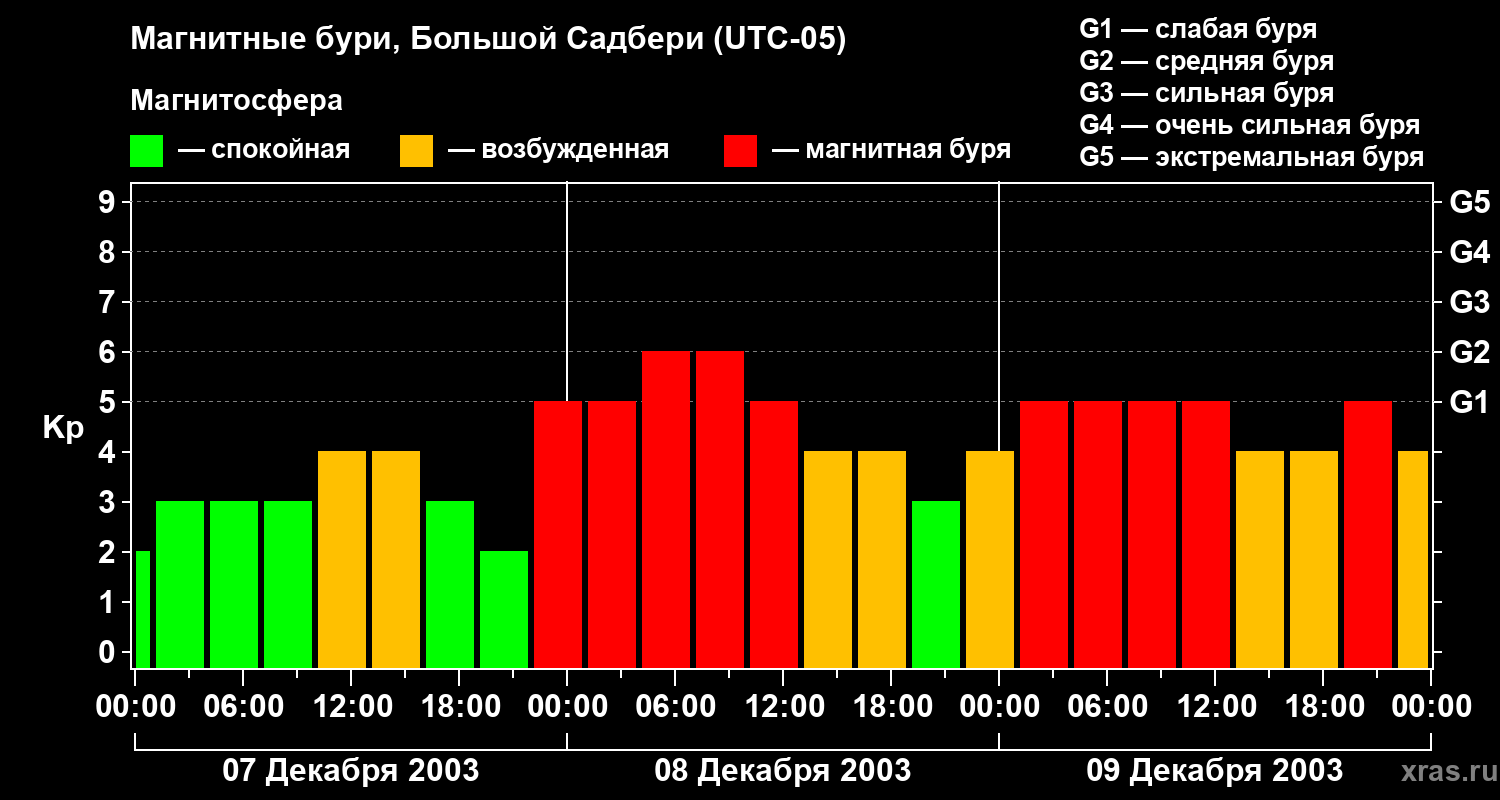 Магнитные бури Большом Садбери 9 декабря 2003 года