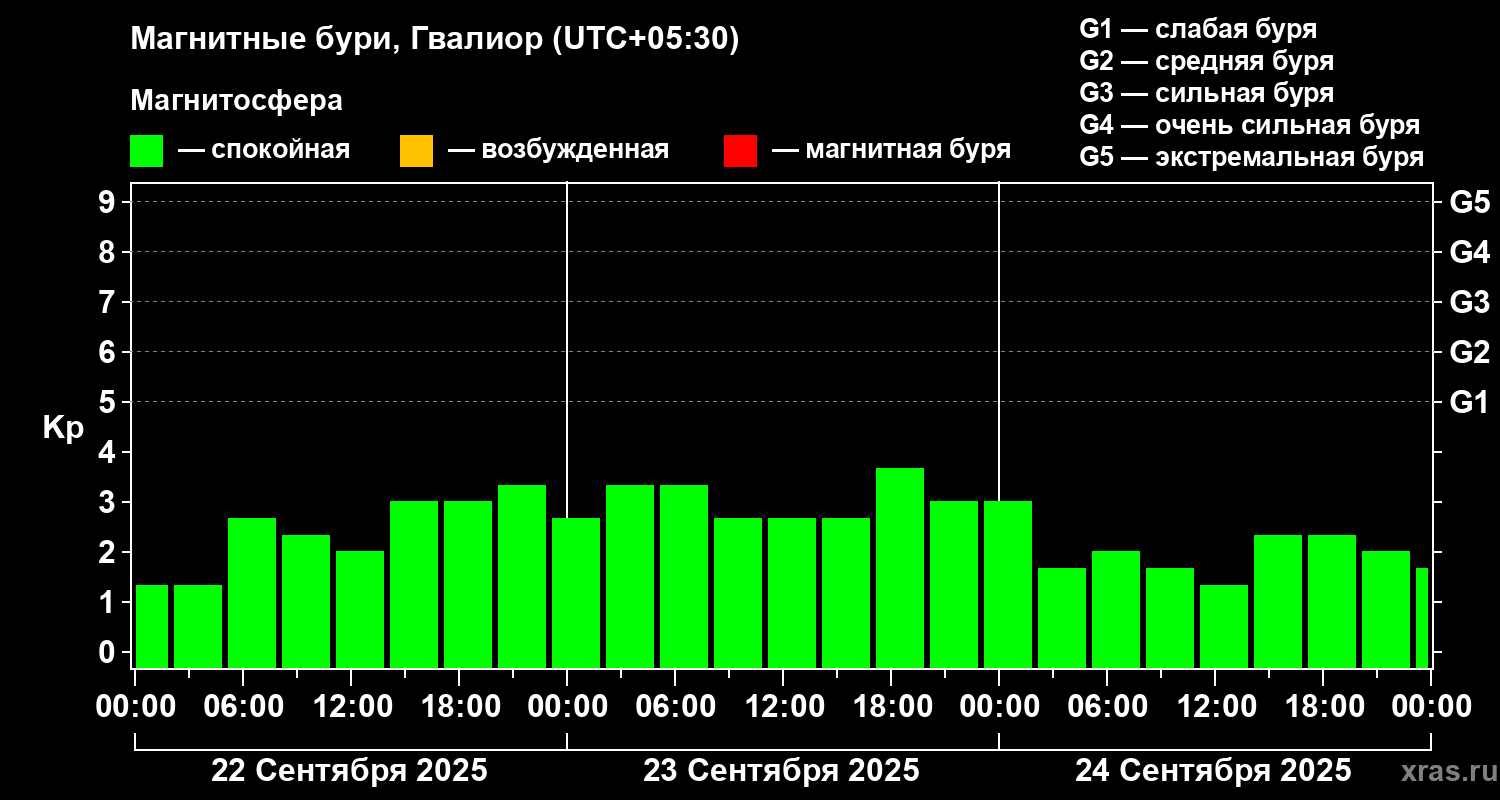 Магнитные бури в Гвалиоре — 24 сентября 2025 года