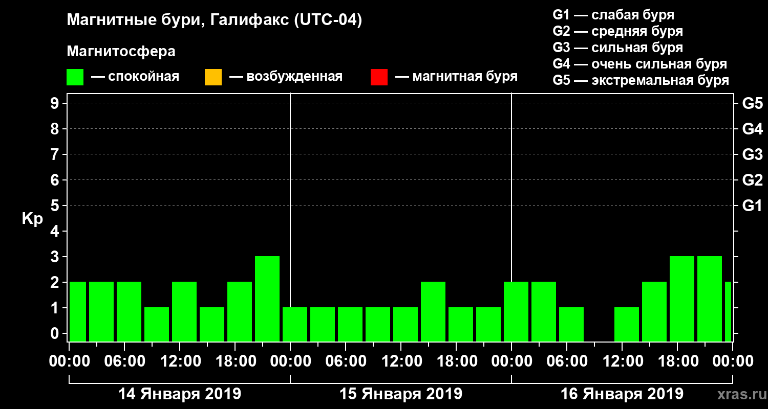 Магнитные бури в Галифаксе 16 января 2019 года