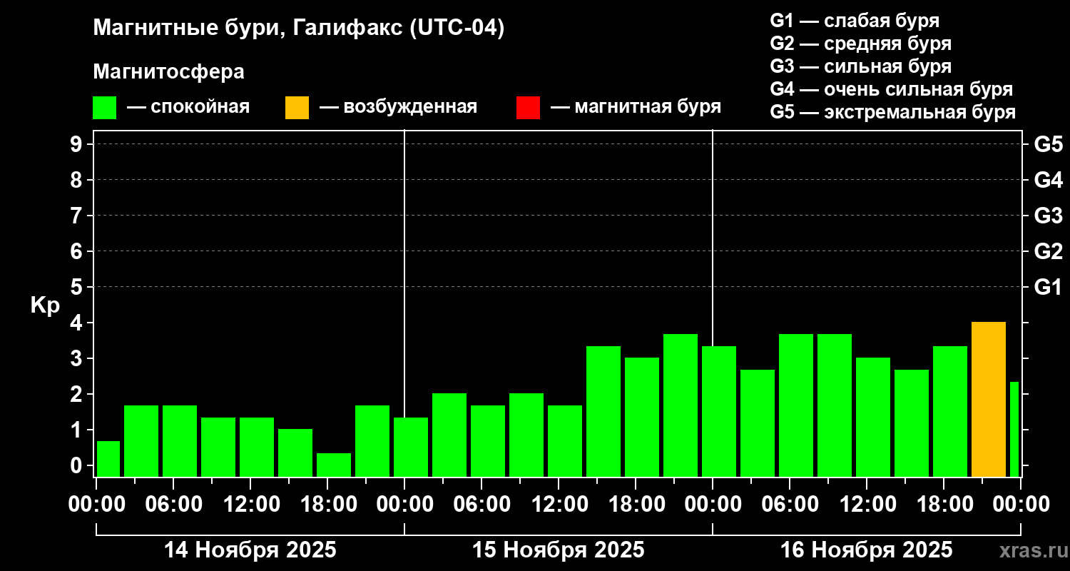 Магнитные бури в Галифаксе — 16 ноября 2025 года