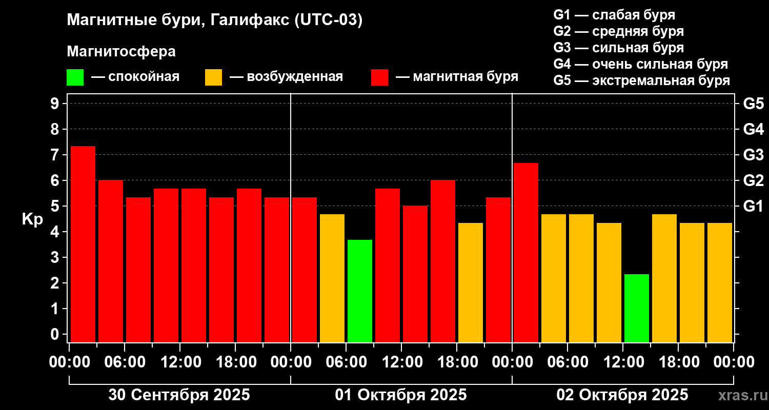 Магнитные бури в Галифаксе 2 октября 2025 года
