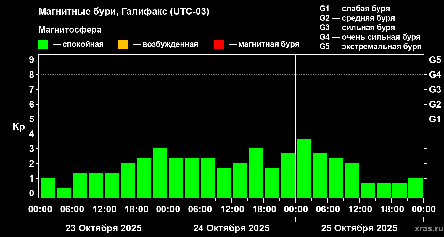 Магнитные бури в Галифаксе 25 октября 2025 года