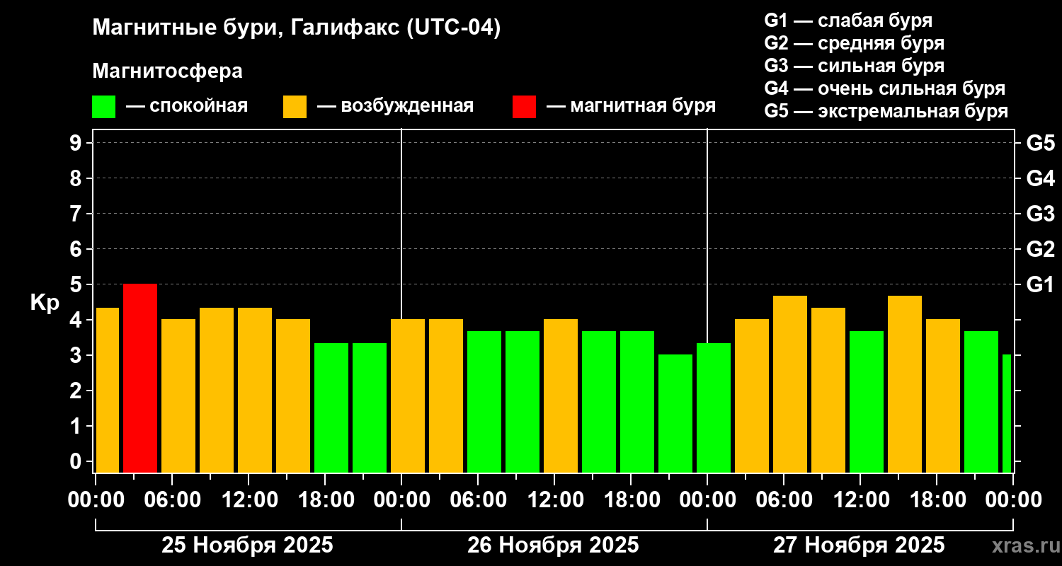 Магнитные бури в Галифаксе — 27 ноября 2025 года