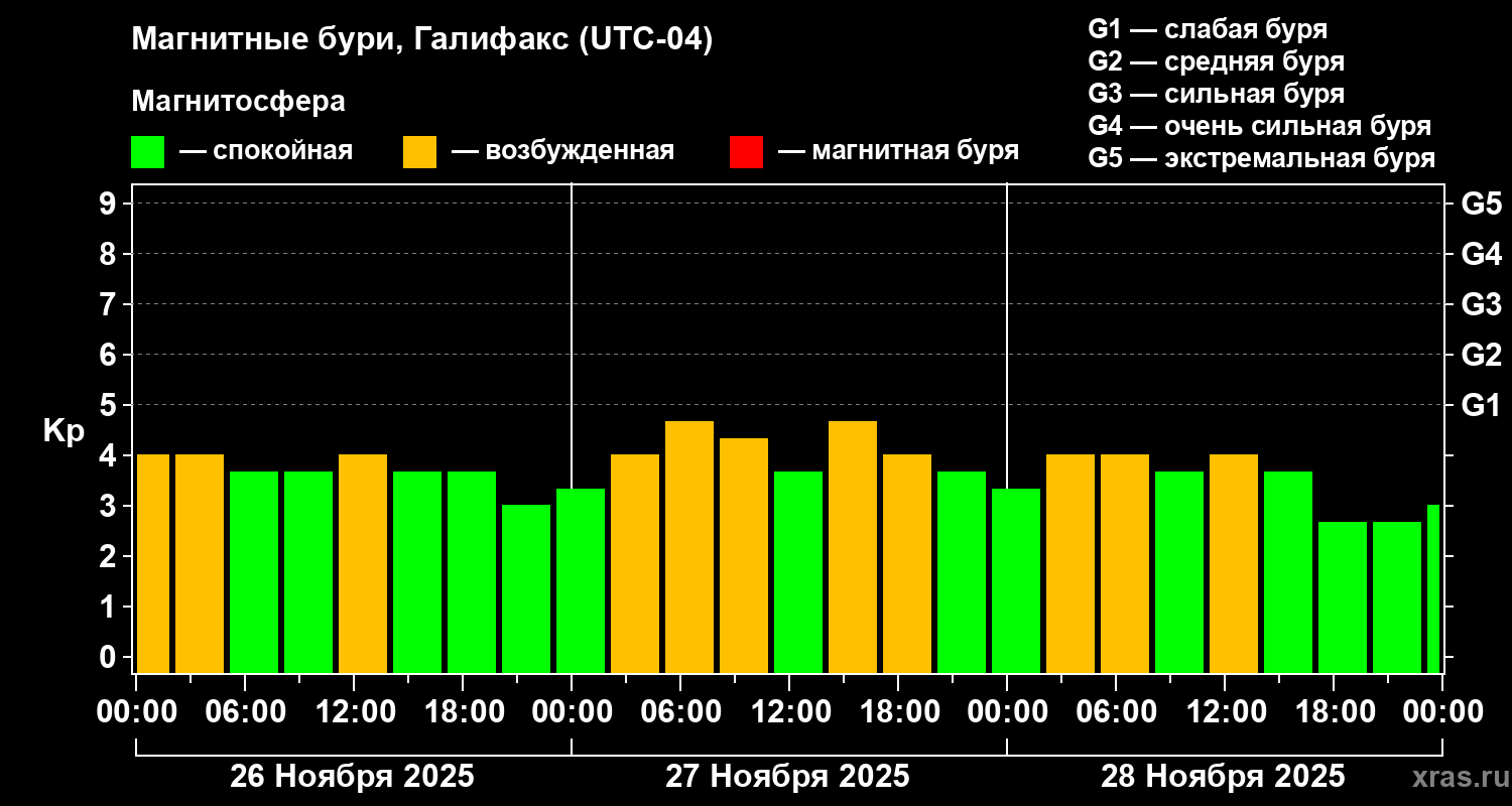 Магнитные бури в Галифаксе 28 ноября 2025 года