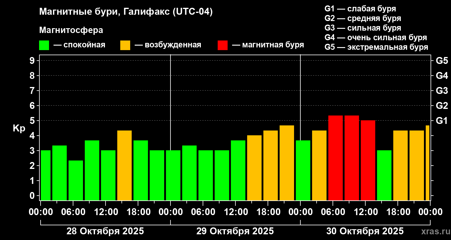 Магнитные бури в Галифаксе — 30 октября 2025 года