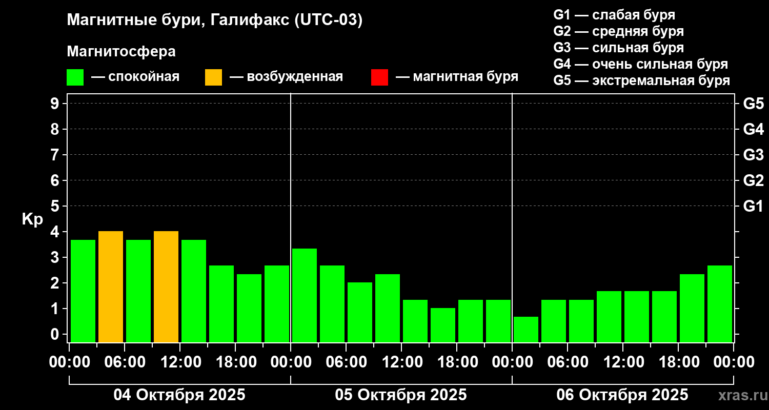 Магнитные бури в Галифаксе — 6 октября 2025 года