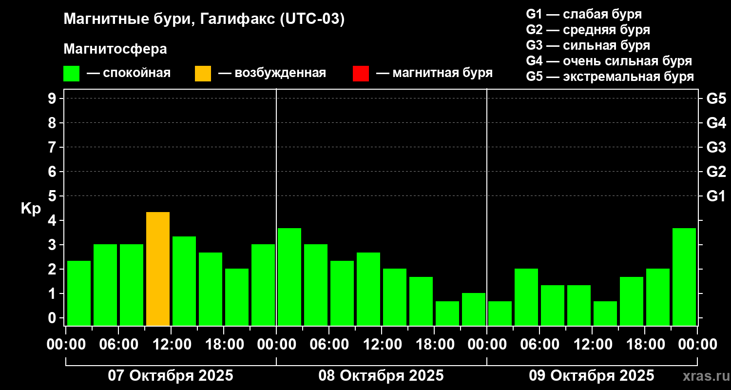 Магнитные бури в Галифаксе — 9 октября 2025 года