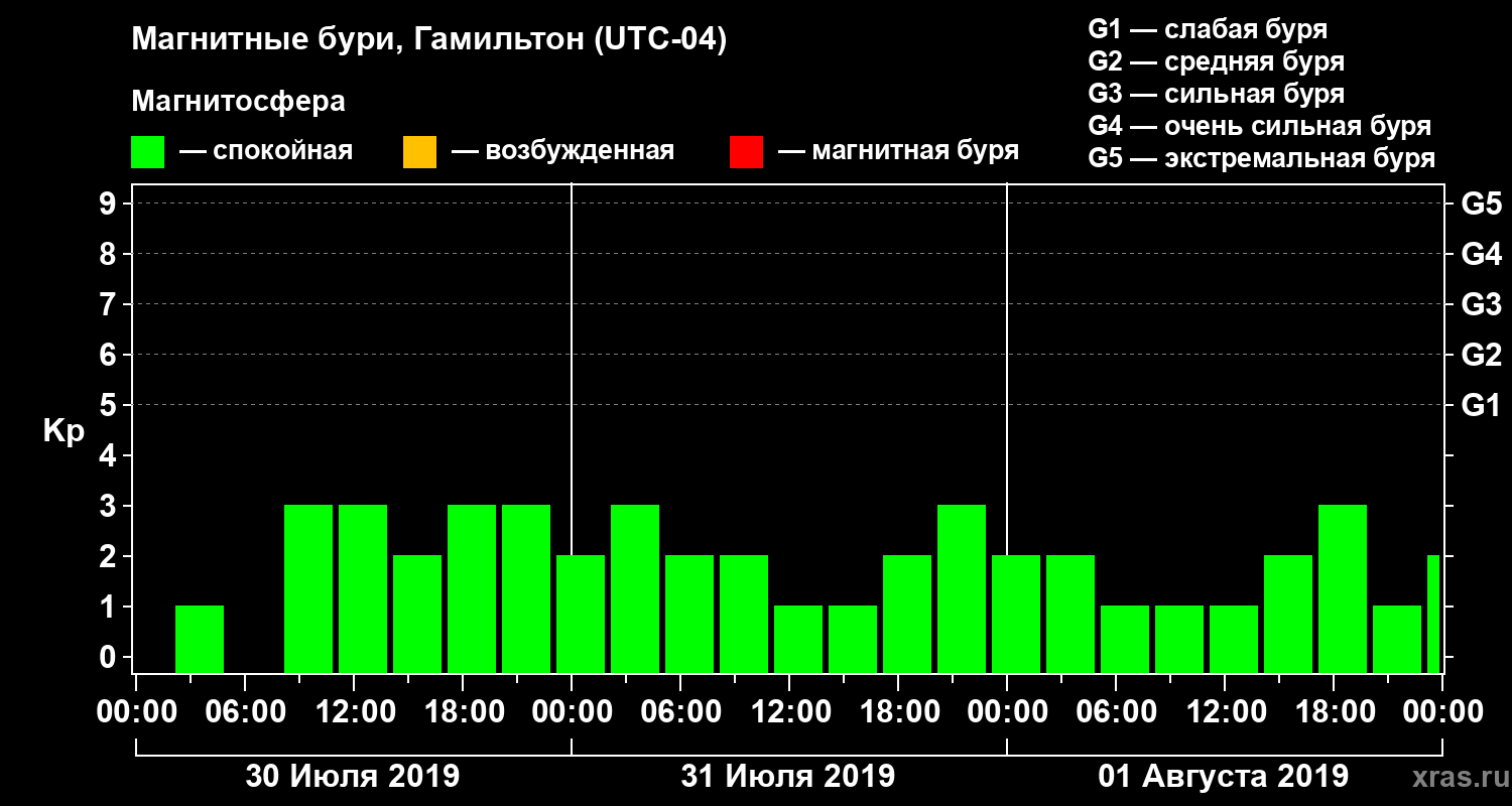 Магнитные бури в Гамильтоне 1 августа 2019 года