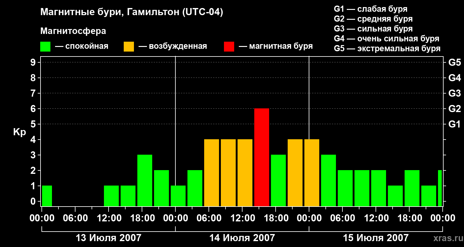 Магнитные бури в Гамильтоне — 15 июля 2007 года