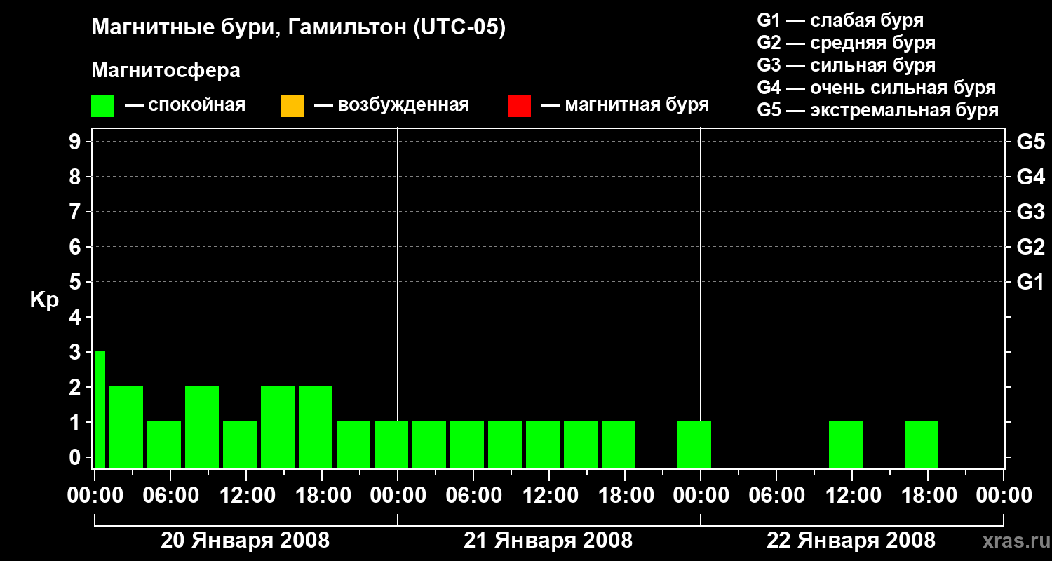 Магнитные бури в Гамильтоне — 22 января 2008 года