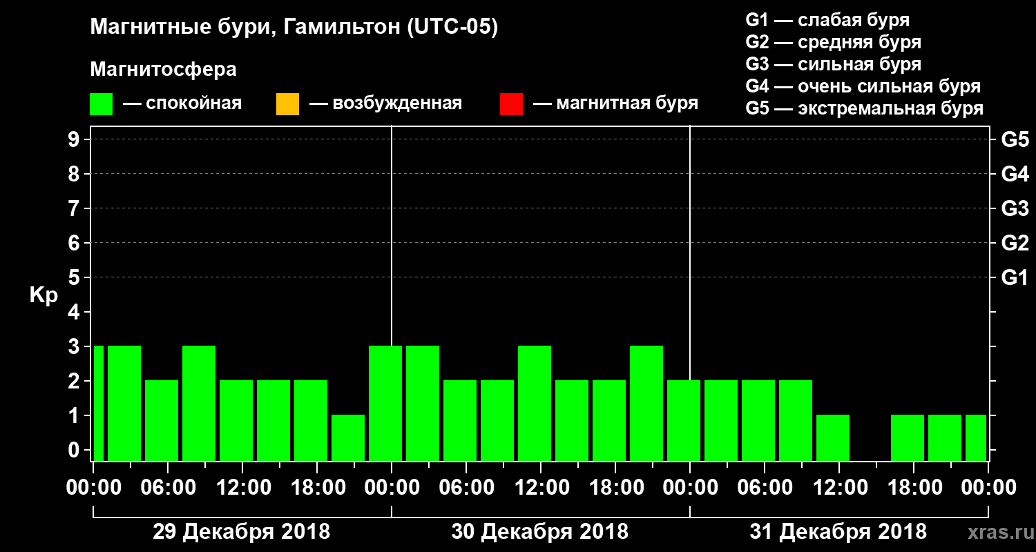 Магнитные бури в Гамильтоне — 31 декабря 2018 года