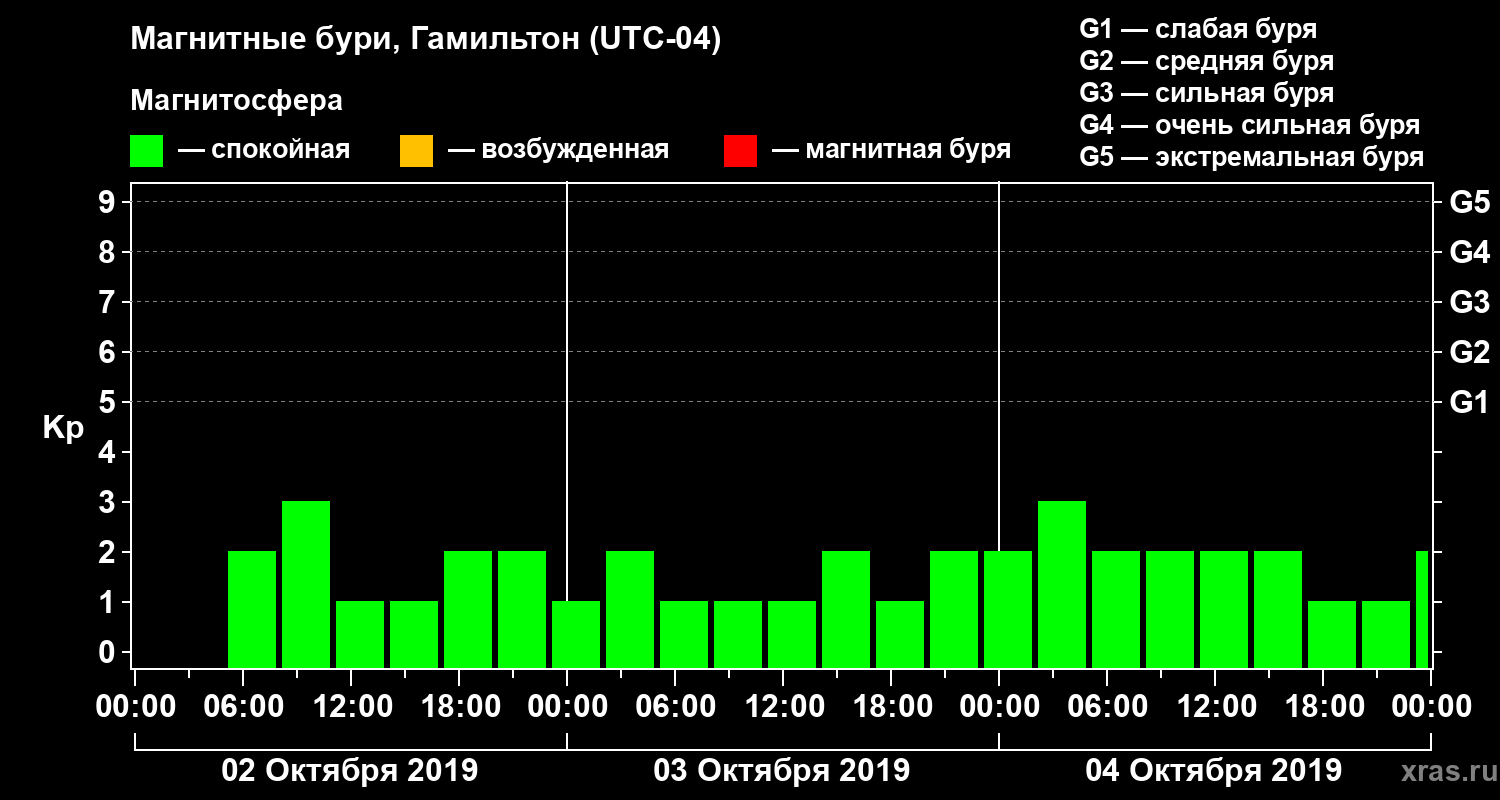 Магнитные бури в Гамильтоне — 4 октября 2019 года
