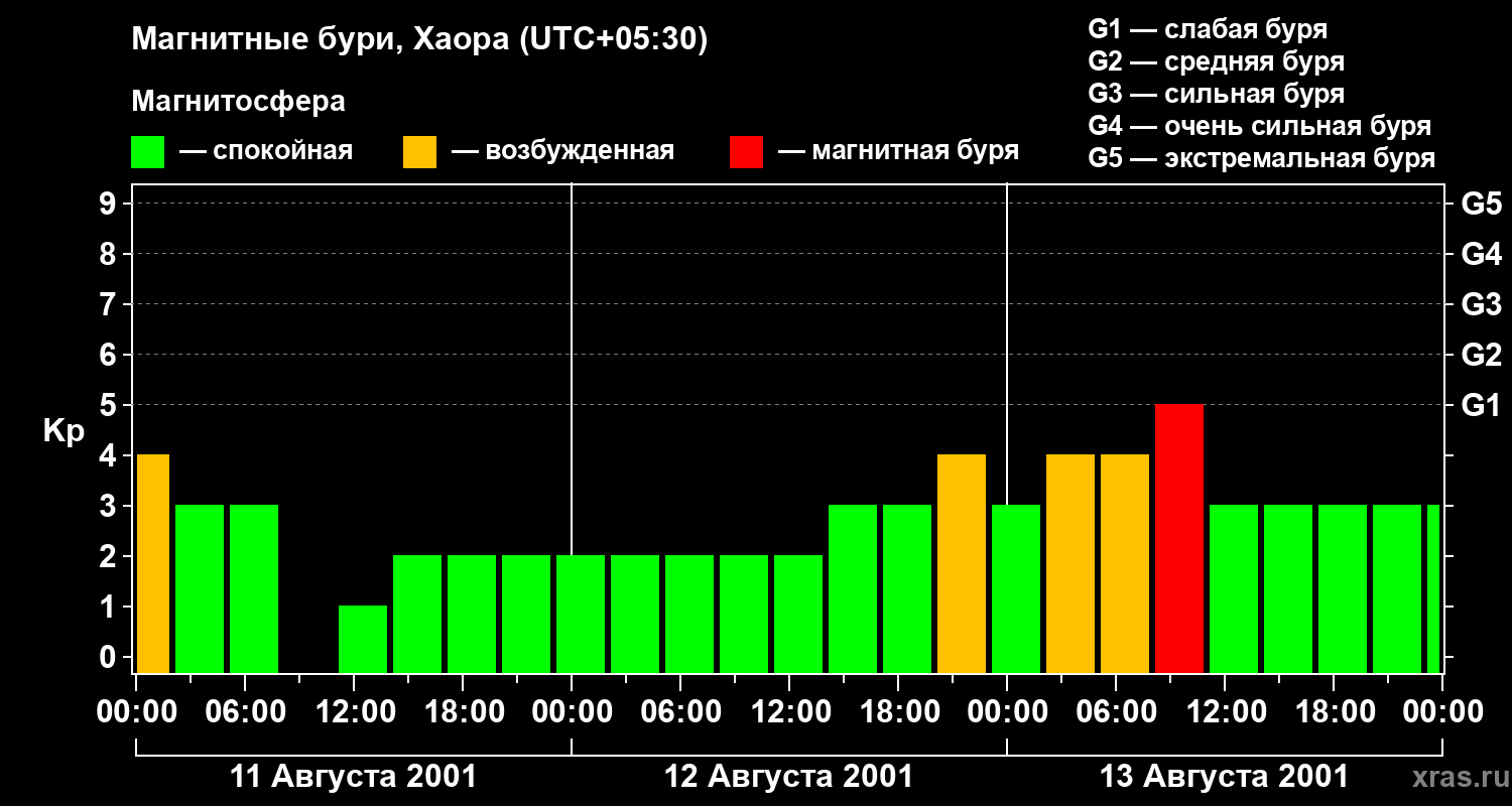 Магнитные бури в Хаоре — 13 августа 2001 года