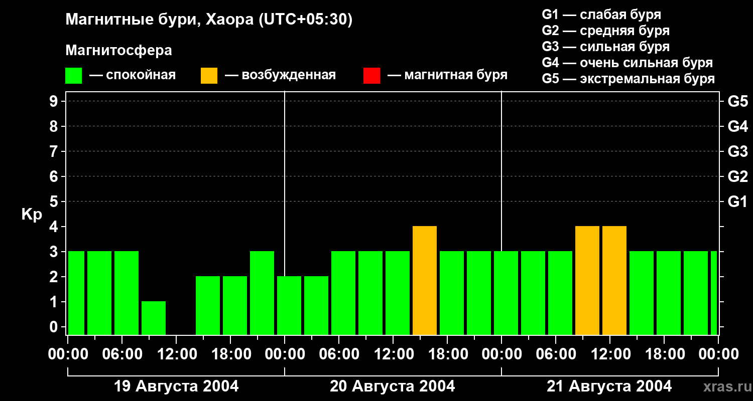 Магнитные бури в Хаоре — 21 августа 2004 года