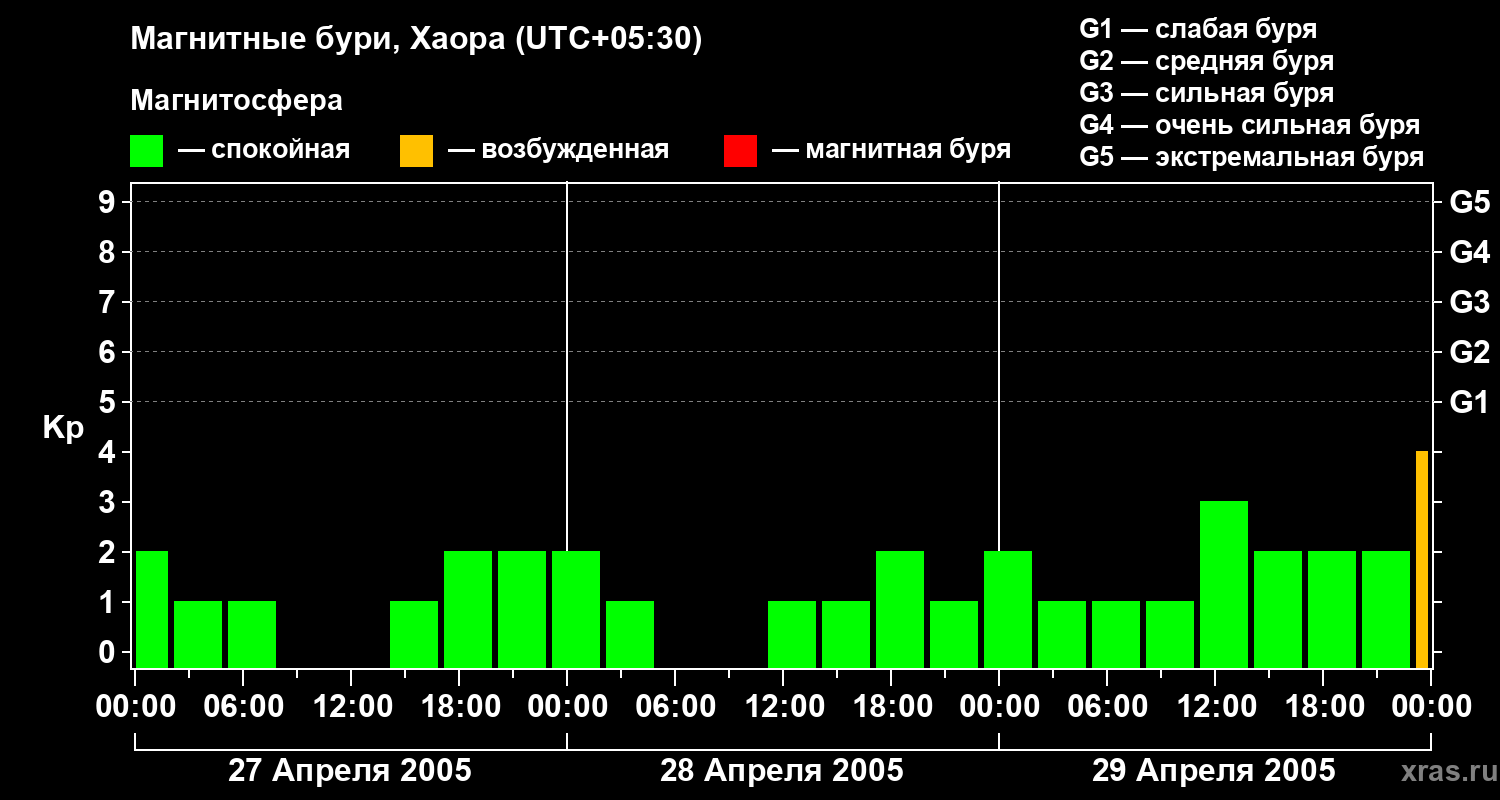 Магнитные бури в Хаоре — 29 апреля 2005 года