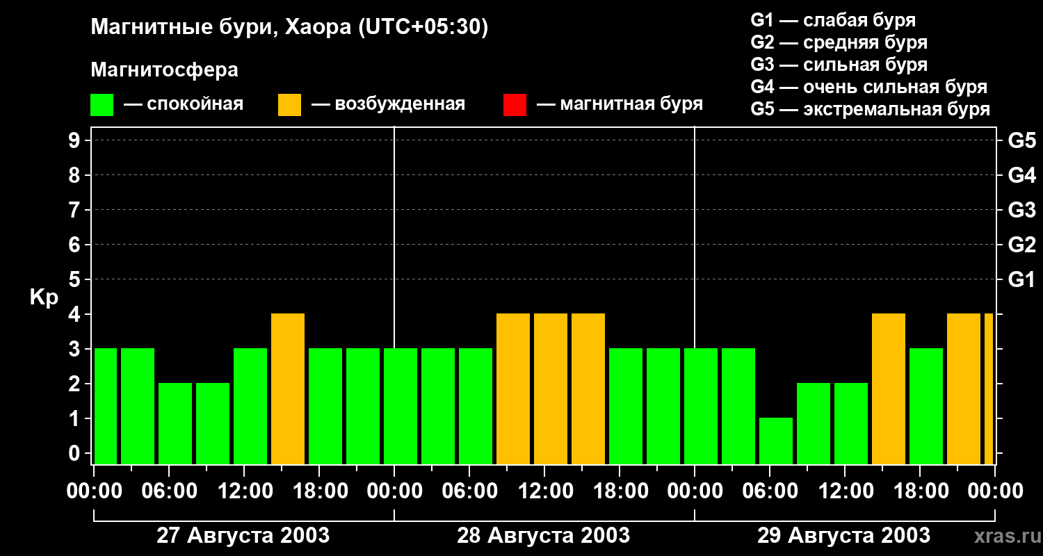 Магнитные бури в Хаоре — 29 августа 2003 года