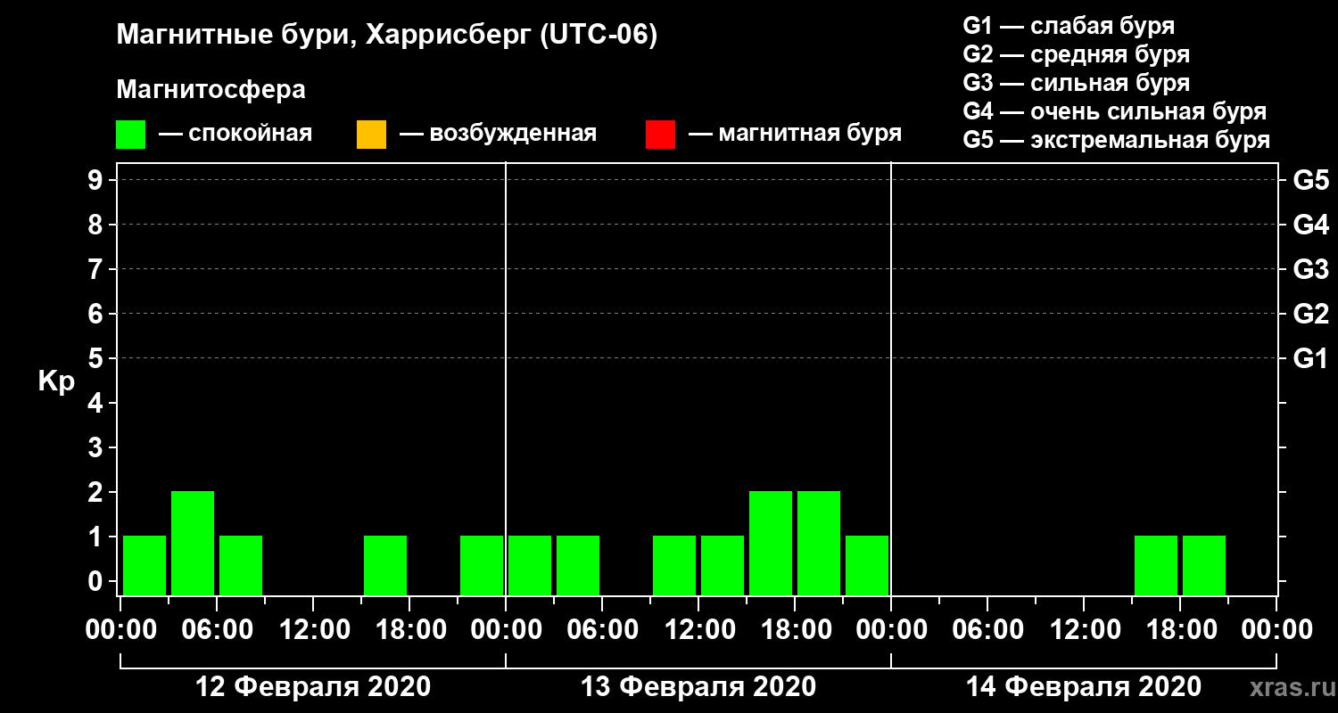Магнитные бури в Харрисберге 14 февраля 2020 года