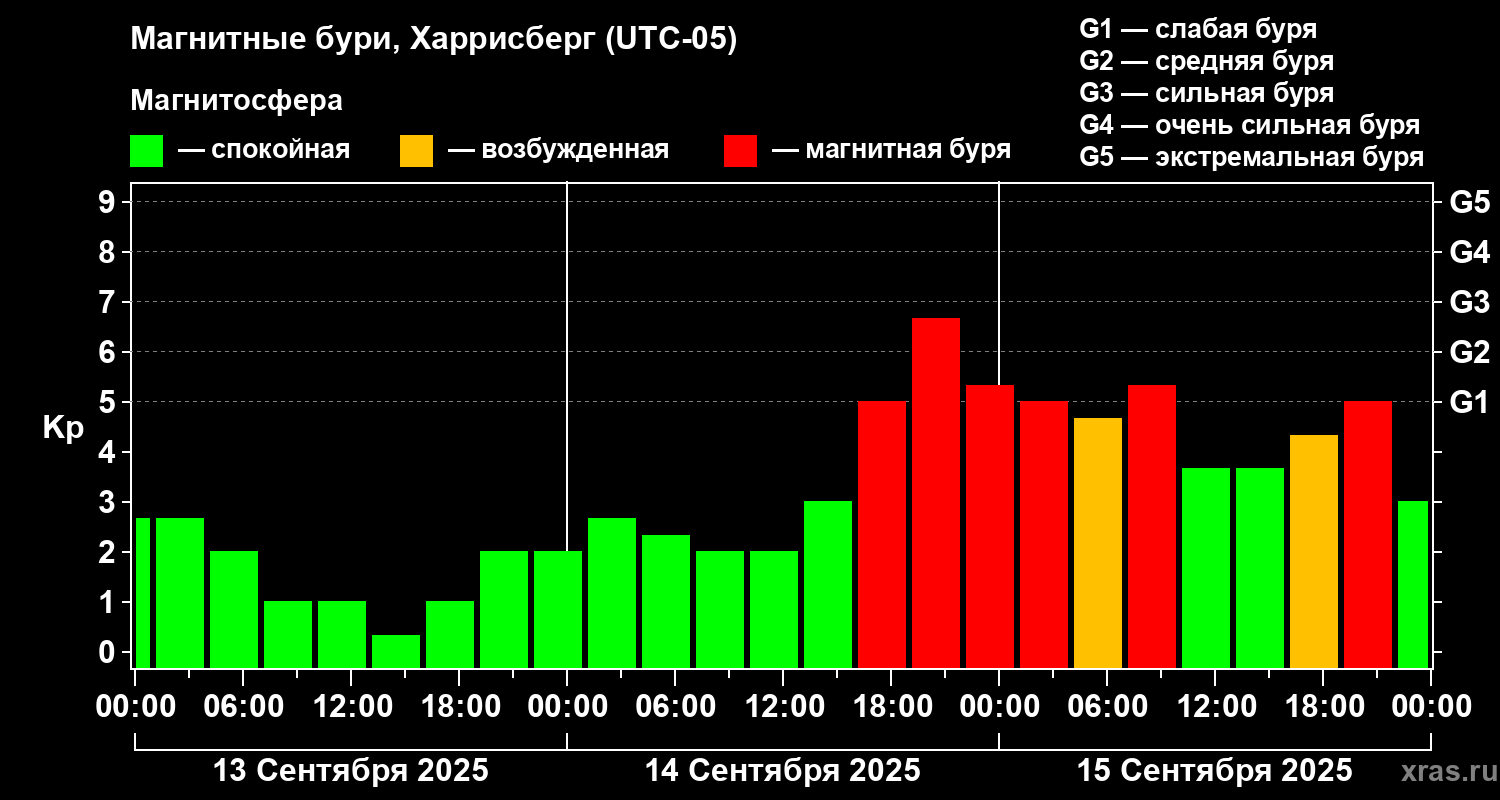 Магнитные бури в Харрисберге 15 сентября 2025 года