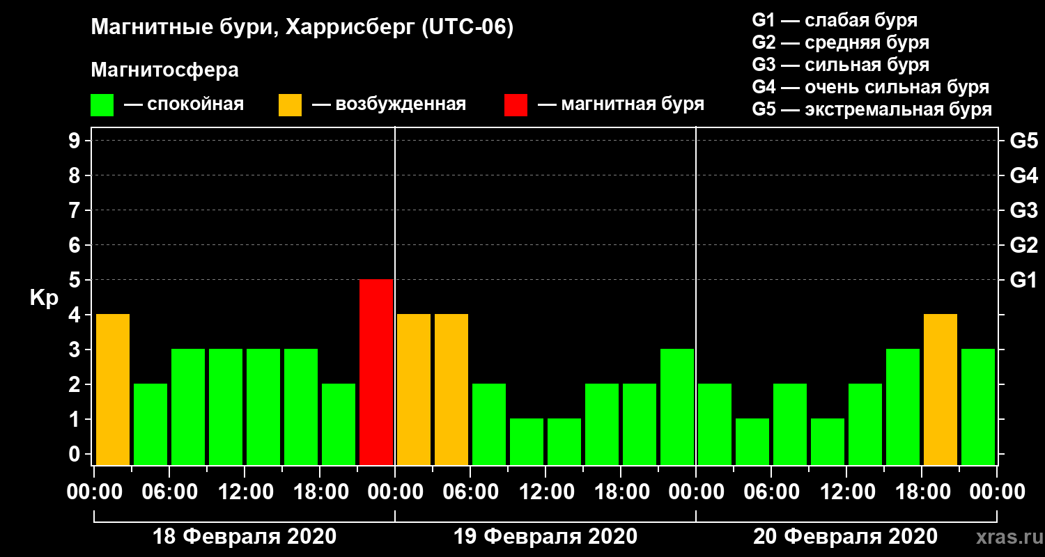 Магнитные бури в Харрисберге 20 февраля 2020 года