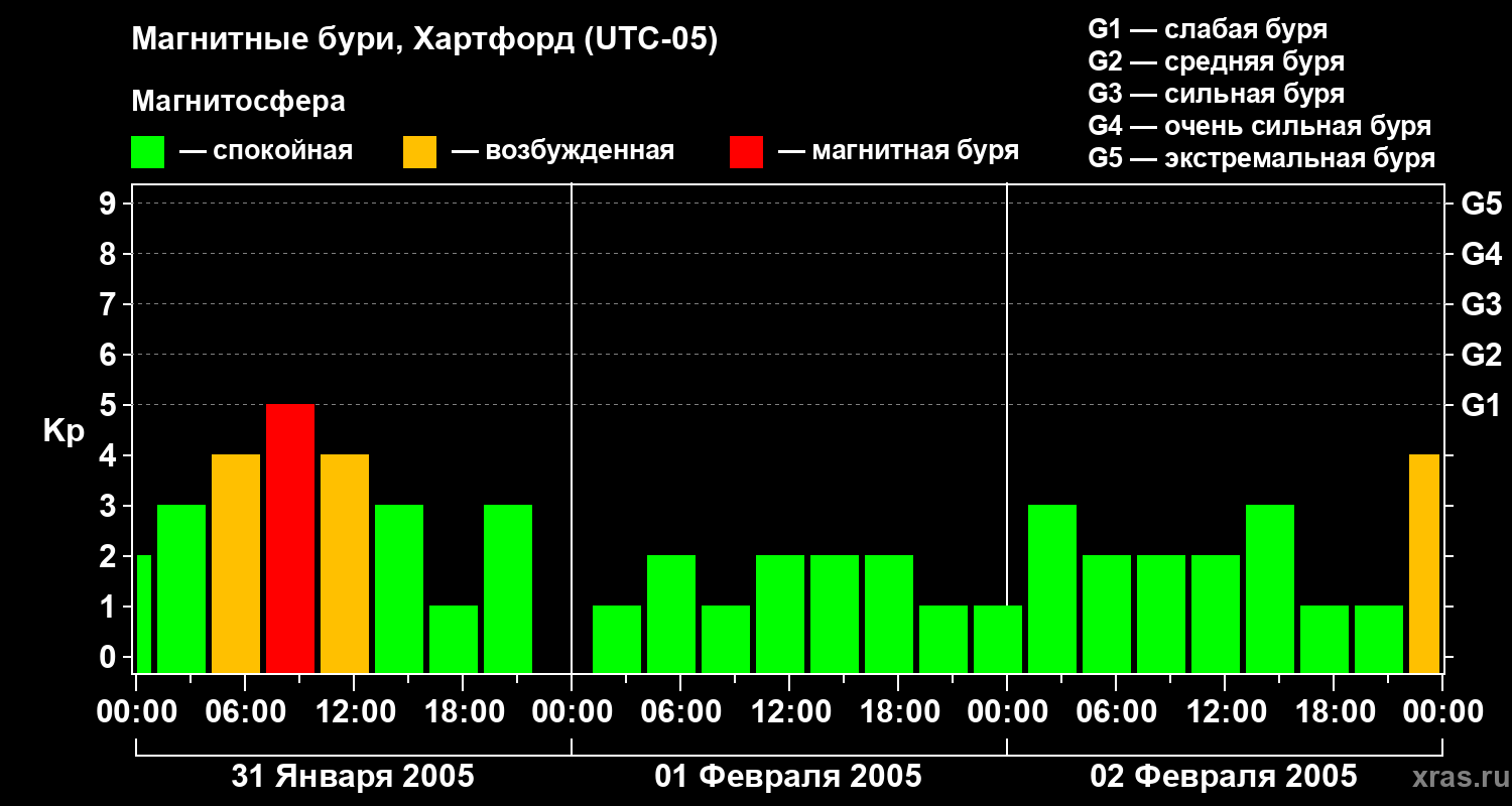 Магнитные бури в Хартфорде 2 февраля 2005 года