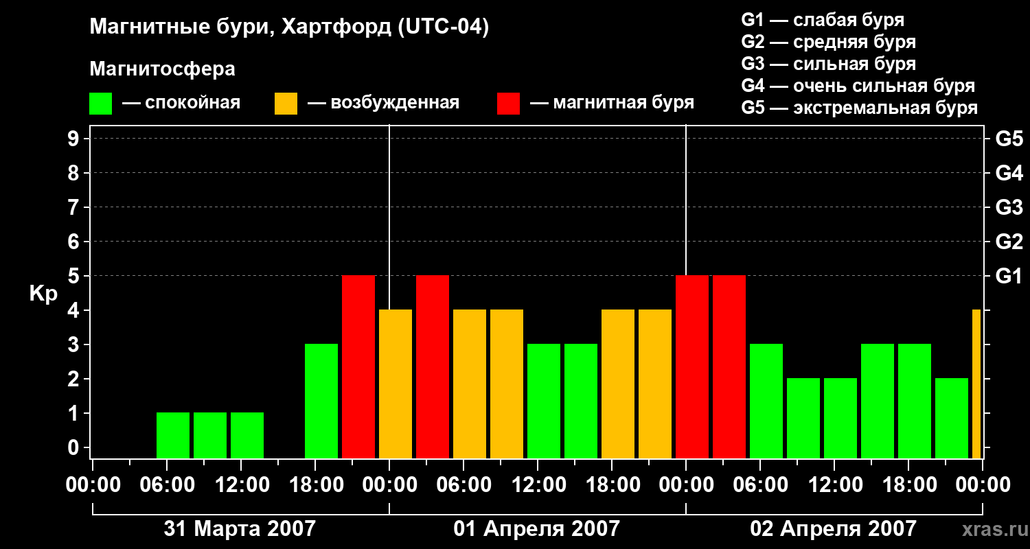 Магнитные бури в Хартфорде 2 апреля 2007 года