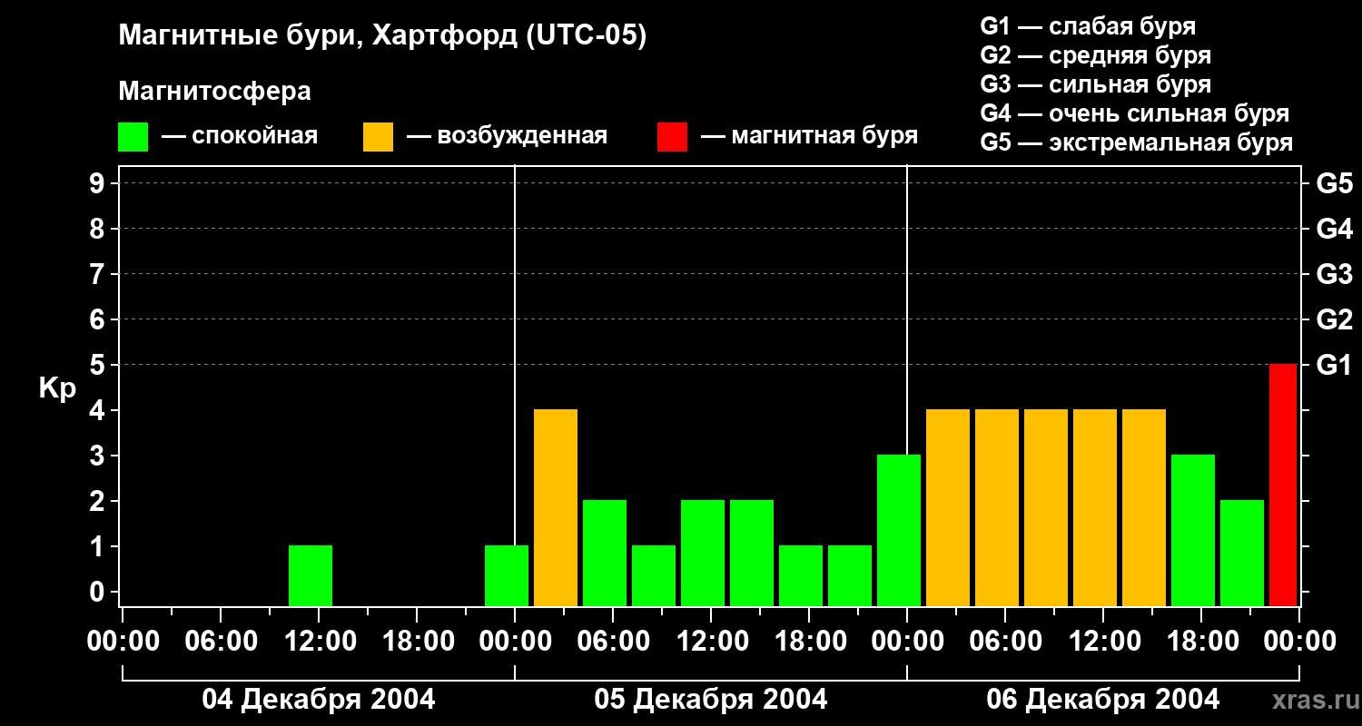 Магнитные бури в Хартфорде в декабре 2004 года