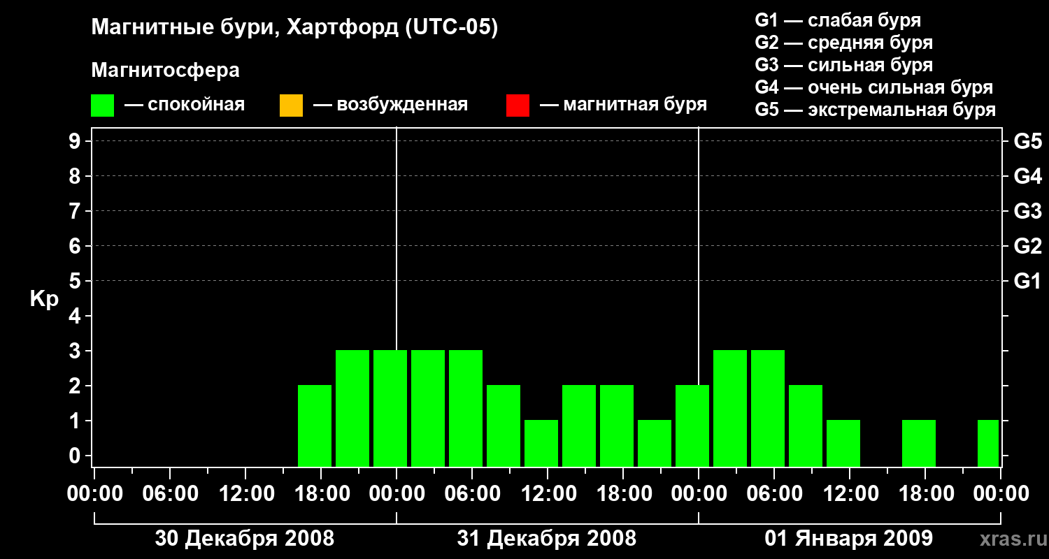 Магнитные бури в Хартфорде — 1 января 2009 года