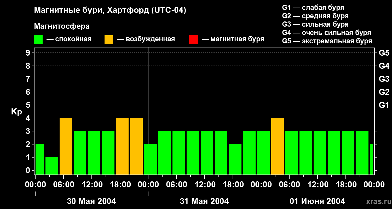 Магнитные бури в Хартфорде 1 июня 2004 года