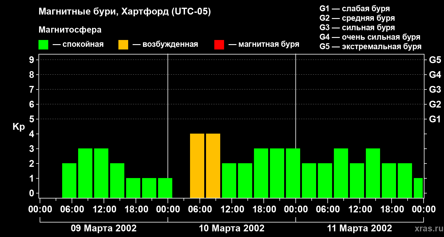 Магнитные бури в Хартфорде 11 марта 2002 года