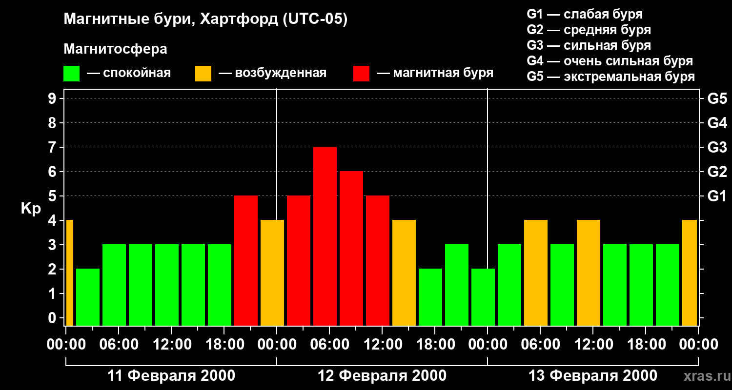 Магнитные бури в Хартфорде 13 февраля 2000 года