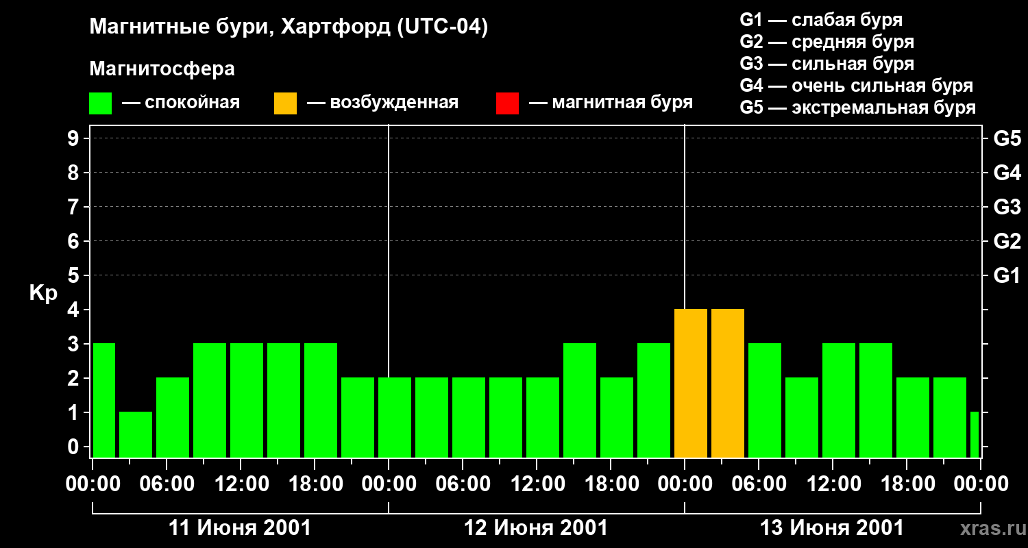 Магнитные бури в Хартфорде 13 июня 2001 года