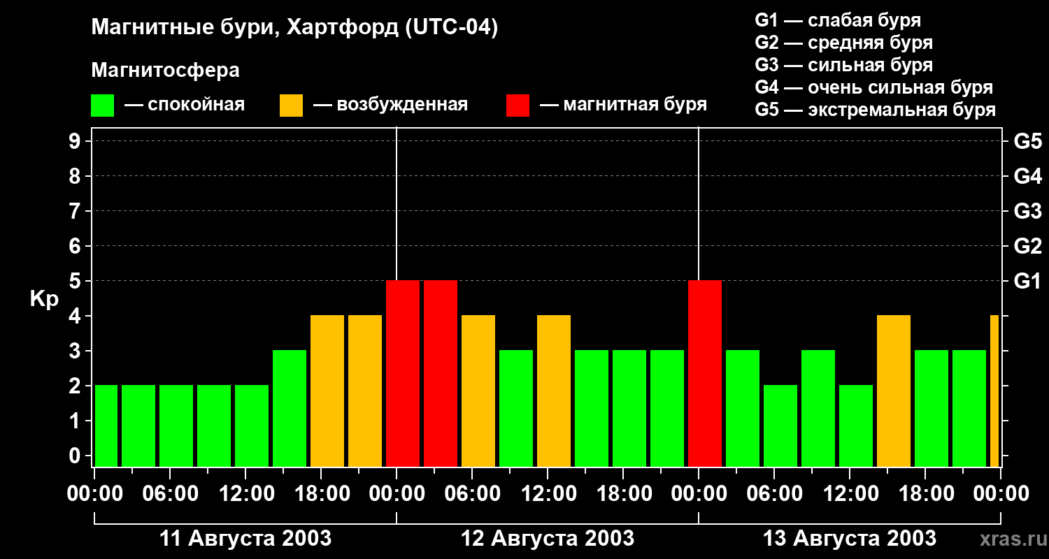 Магнитные бури в Хартфорде 13 августа 2003 года