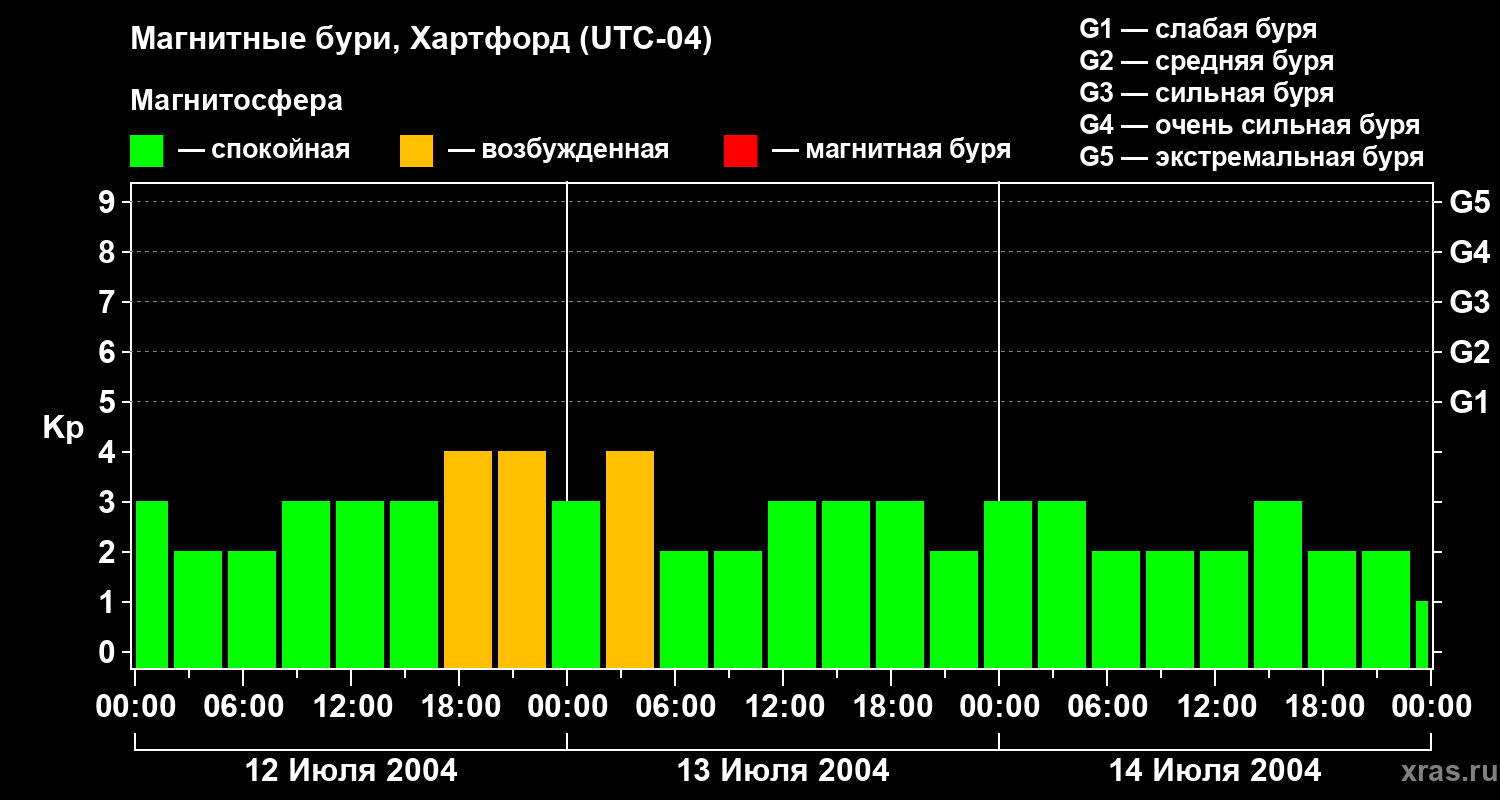 Магнитные бури в Хартфорде 14 июля 2004 года