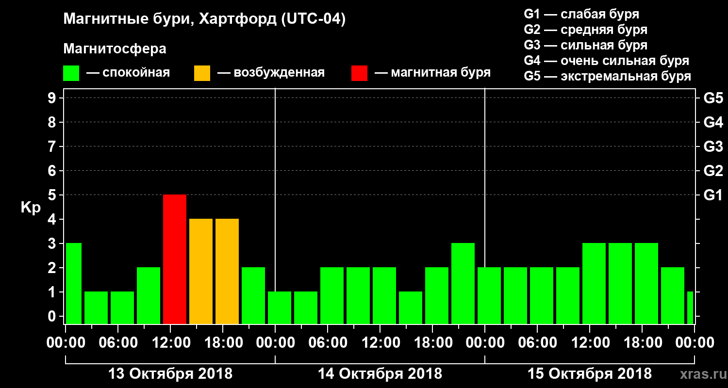 Магнитные бури в Хартфорде 15 октября 2018 года