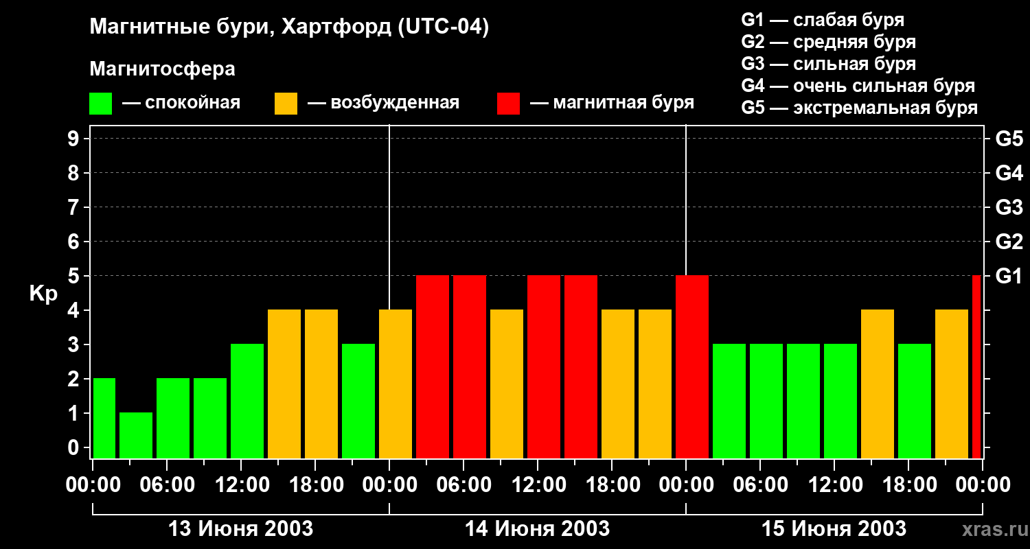 Магнитные бури в Хартфорде — 15 июня 2003 года