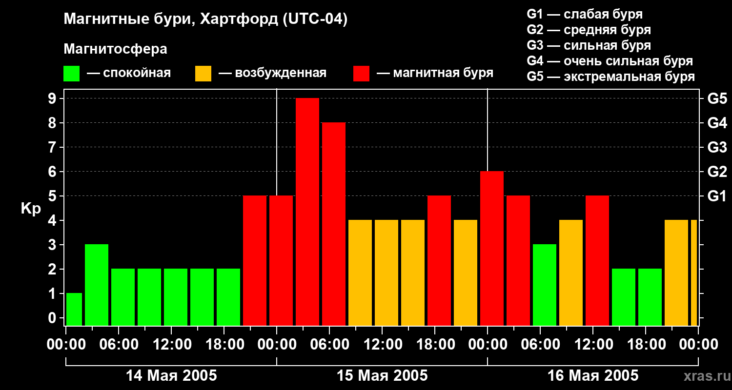 Магнитные бури в Хартфорде — 16 мая 2005 года