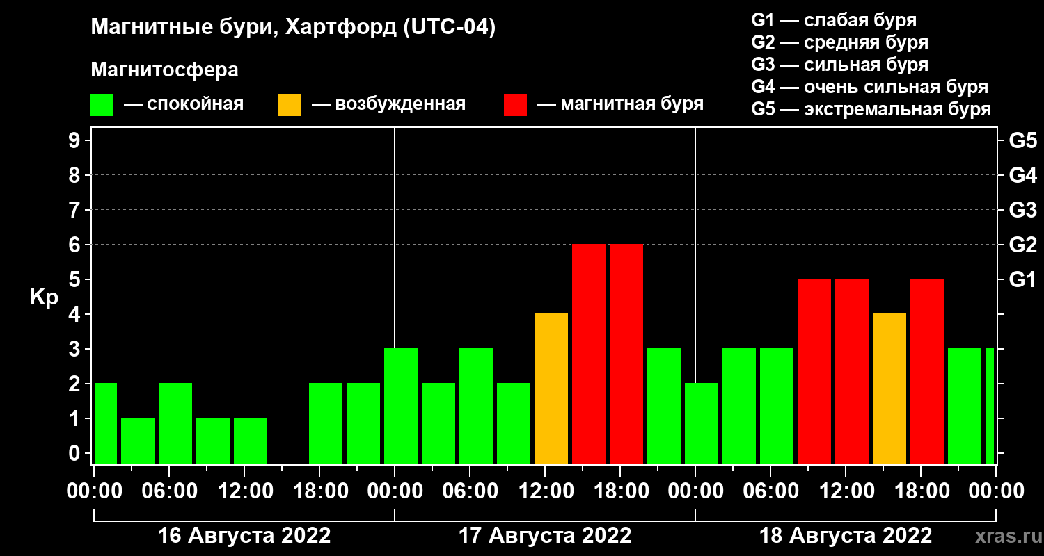 Магнитные бури в Хартфорде 18 августа 2022 года