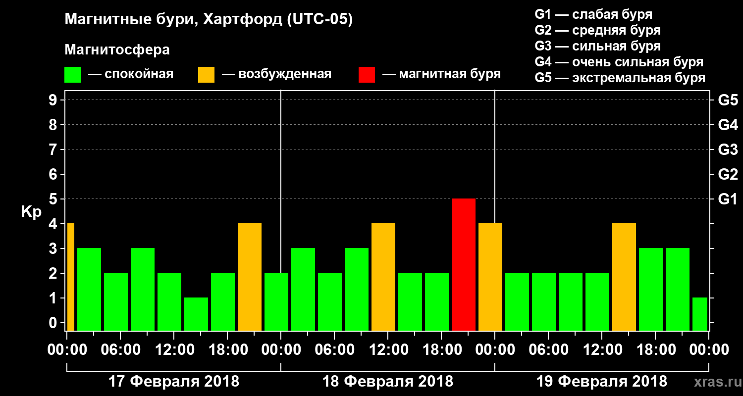 Магнитные бури в Хартфорде в феврале 2018 года