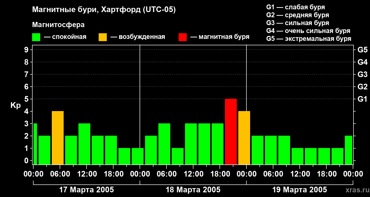 Магнитные бури в Хартфорде в марте 2005 года