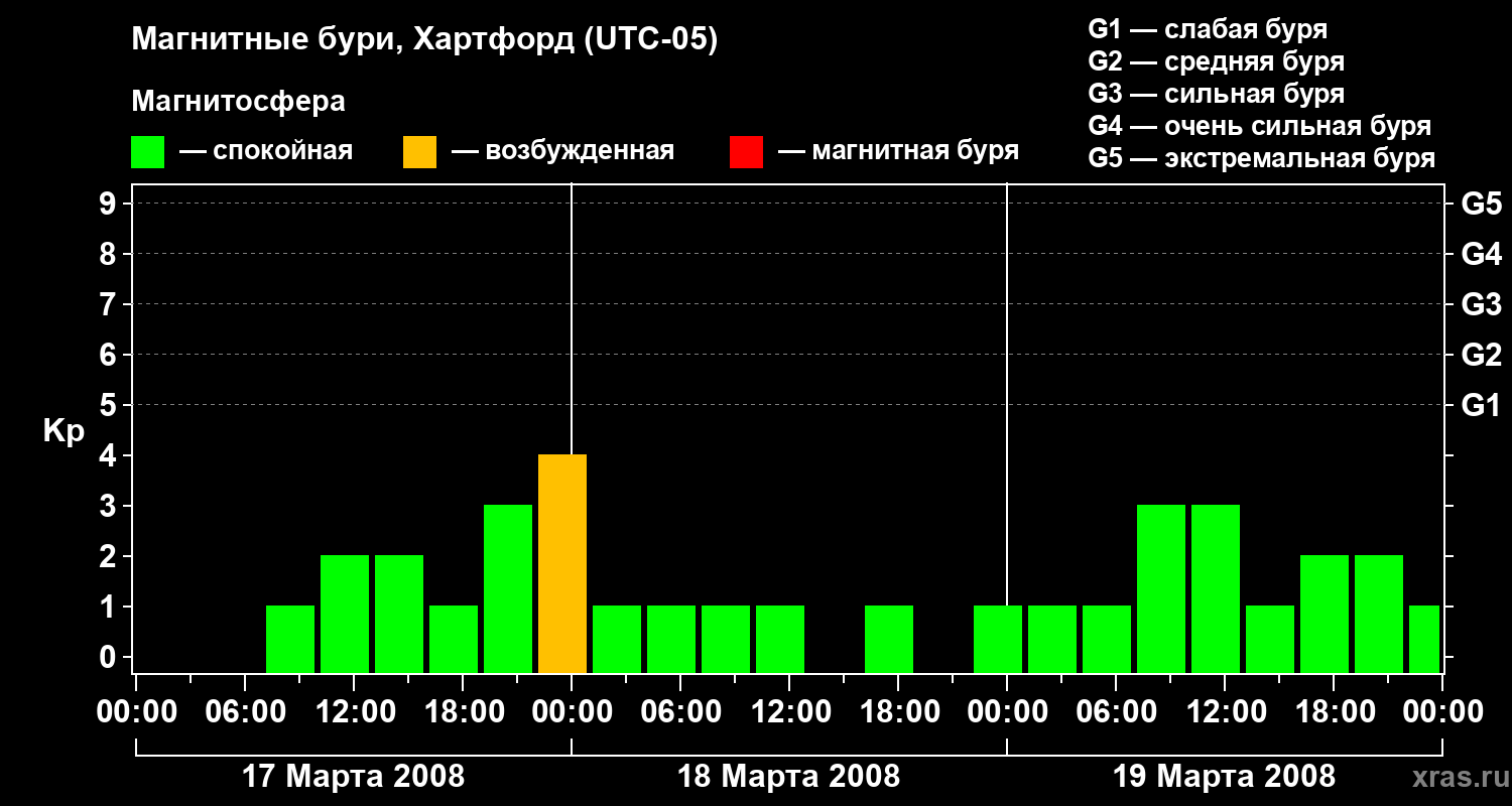 Магнитные бури в Хартфорде в марте 2008 года