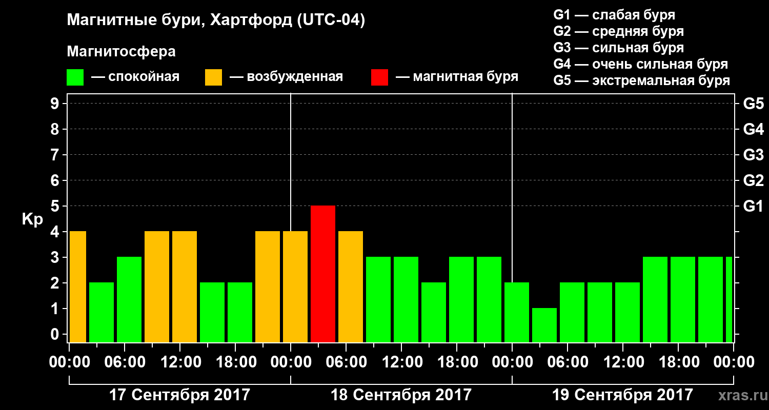 Магнитные бури в Хартфорде 19 сентября 2017 года
