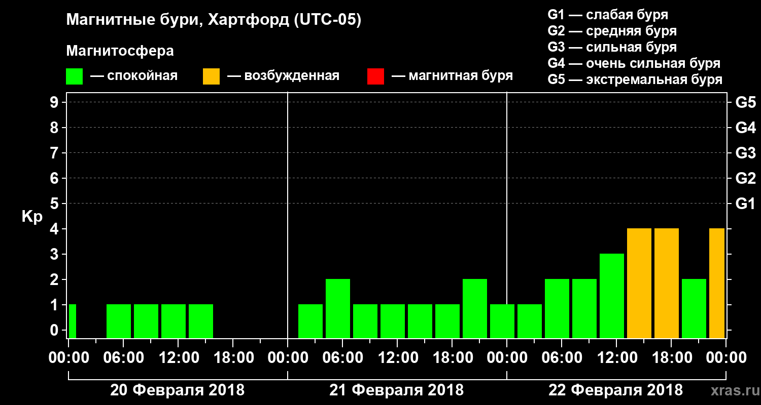 Магнитные бури в Хартфорде 22 февраля 2018 года