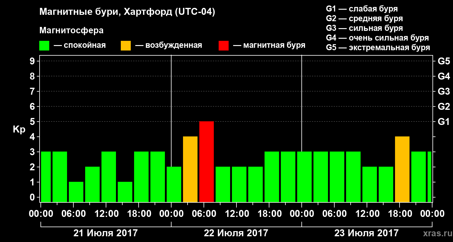 Магнитные бури в Хартфорде 23 июля 2017 года