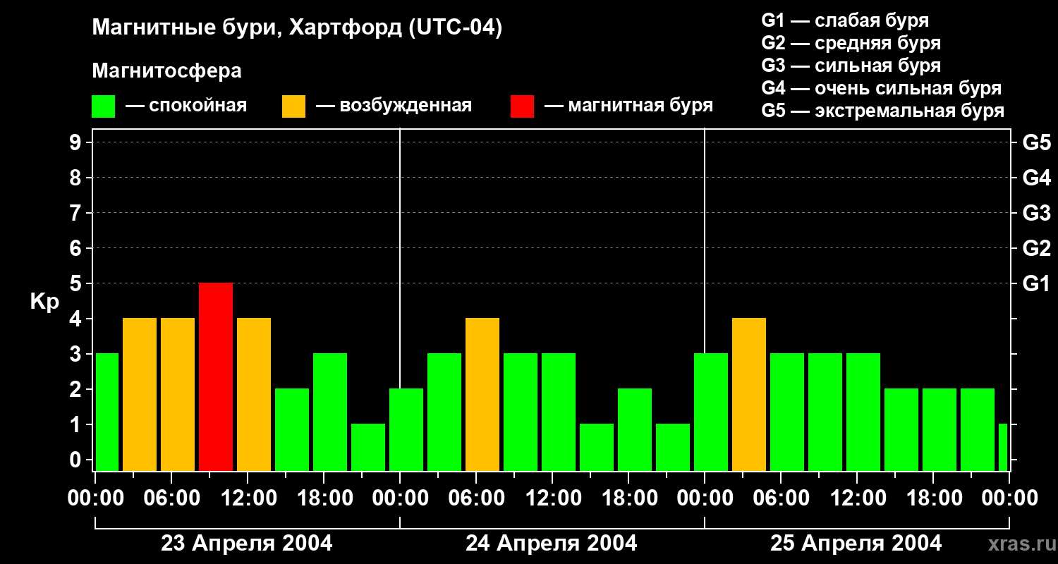 Магнитные бури в Хартфорде 25 апреля 2004 года