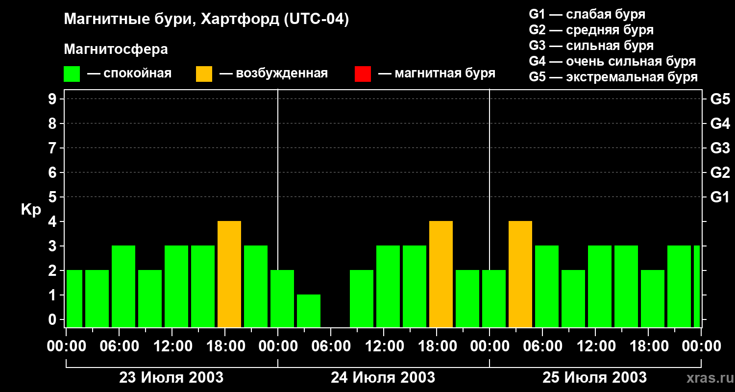 Магнитные бури в Хартфорде 25 июля 2003 года