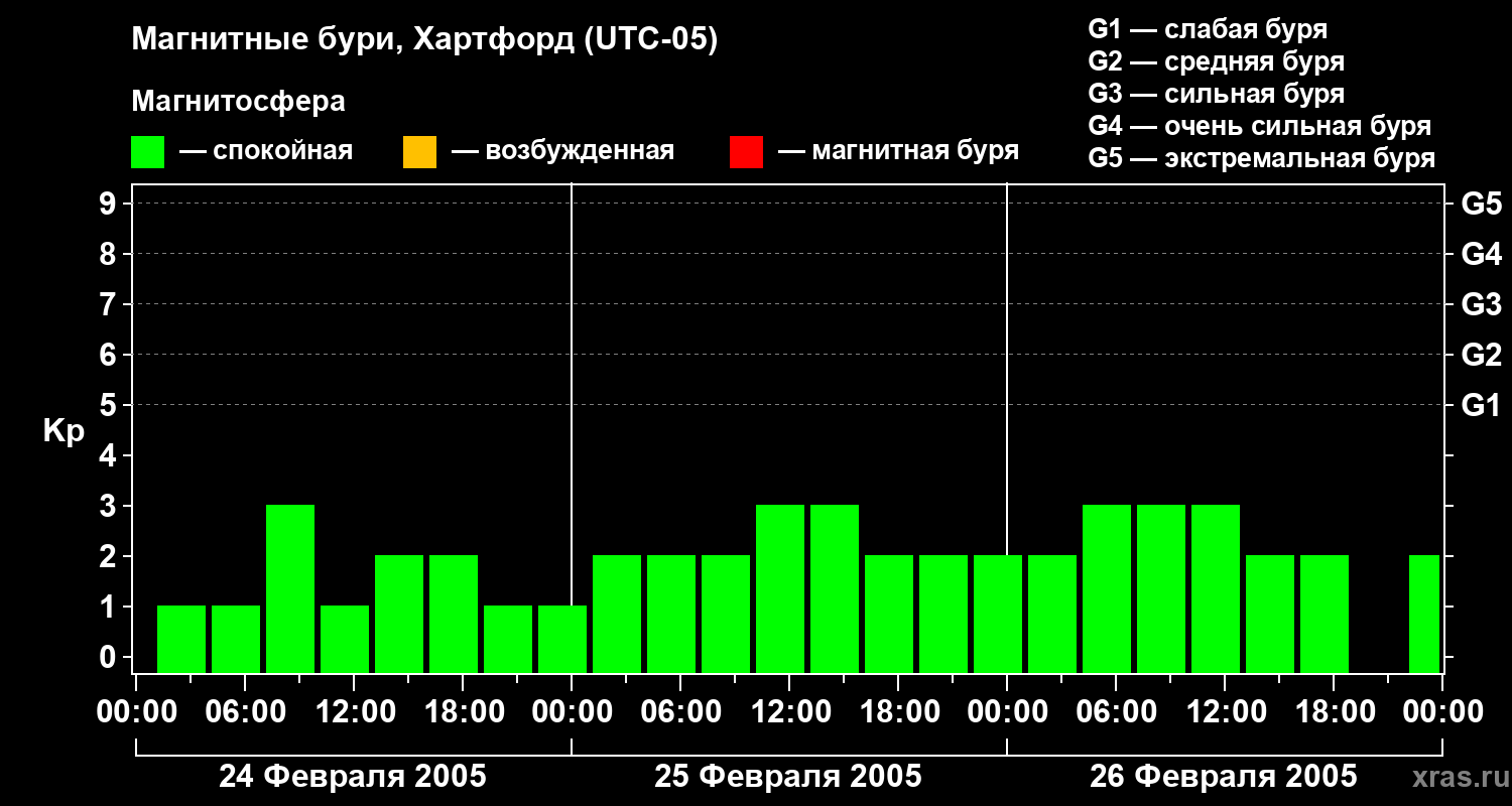 Магнитные бури в Хартфорде 26 февраля 2005 года