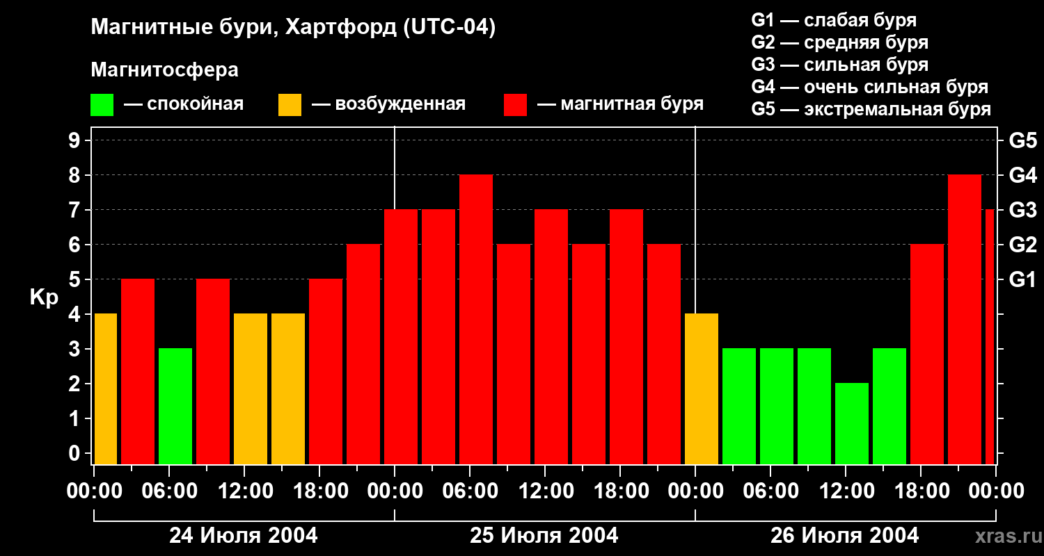 Магнитные бури в Хартфорде 26 июля 2004 года